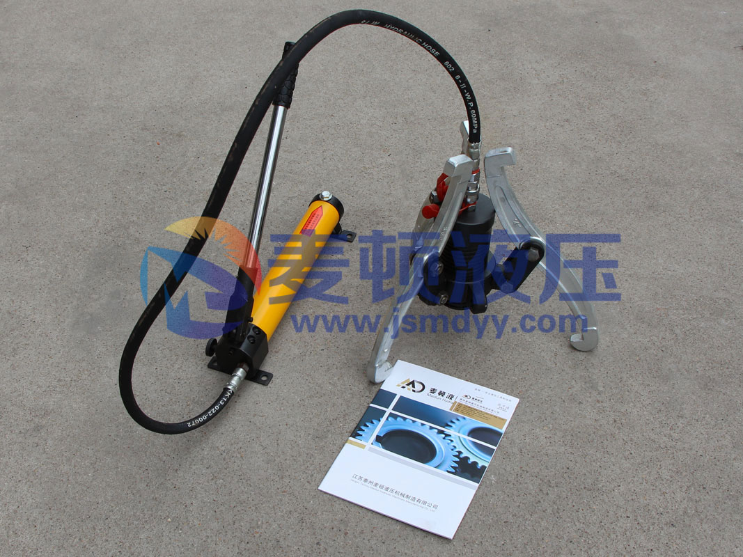 4、液壓拉馬的活塞起動桿有效距只有50mm,故使用時伸距不得大于50mm,當沒有拉出時停止,松開回油閥門,讓活塞起動桿縮回去,調好后第二次再重復1、2、3步驟拉出為止。