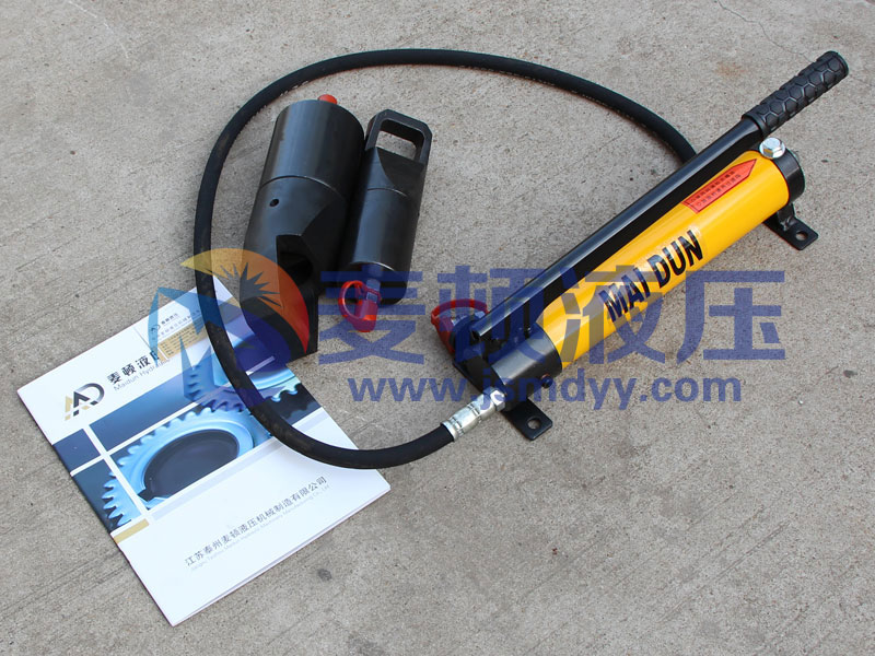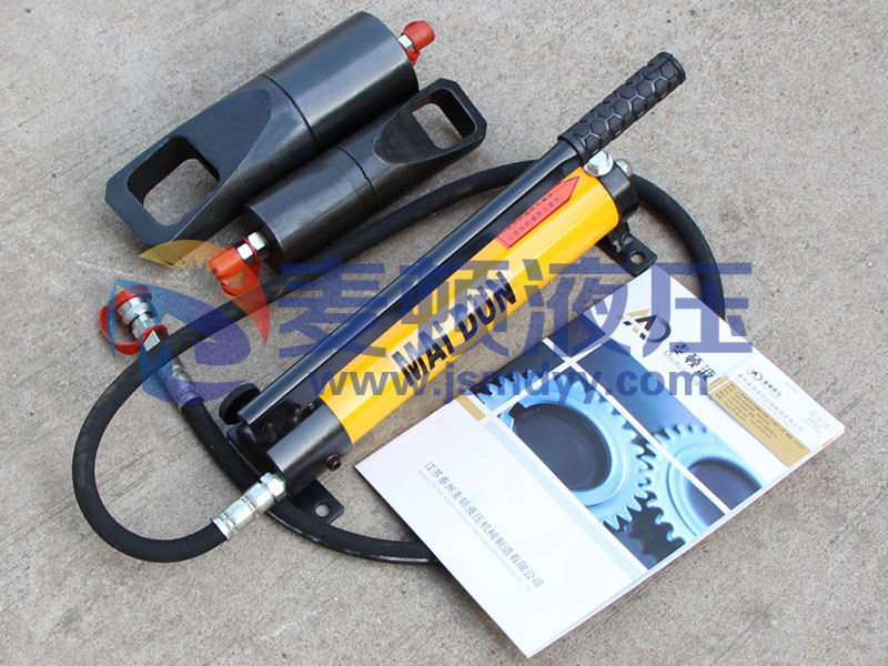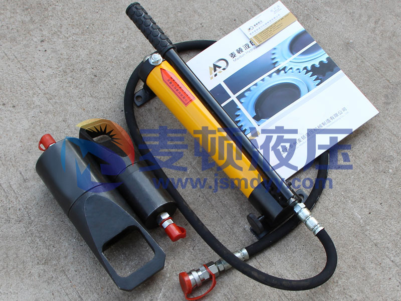 3、壓動(dòng)手動(dòng)油泵,使劈刀頂出推進(jìn)至螺母,當(dāng)劈刀頂進(jìn)螺母二分之一時(shí),須小心的壓動(dòng)手泵,以免用力過(guò)猛,劈刀快速將螺母劈開(kāi)損傷螺栓絲扣。