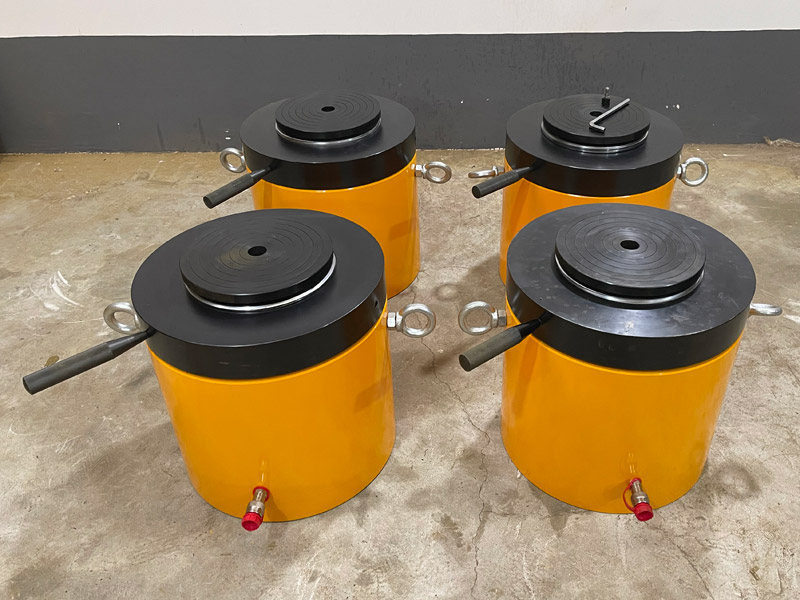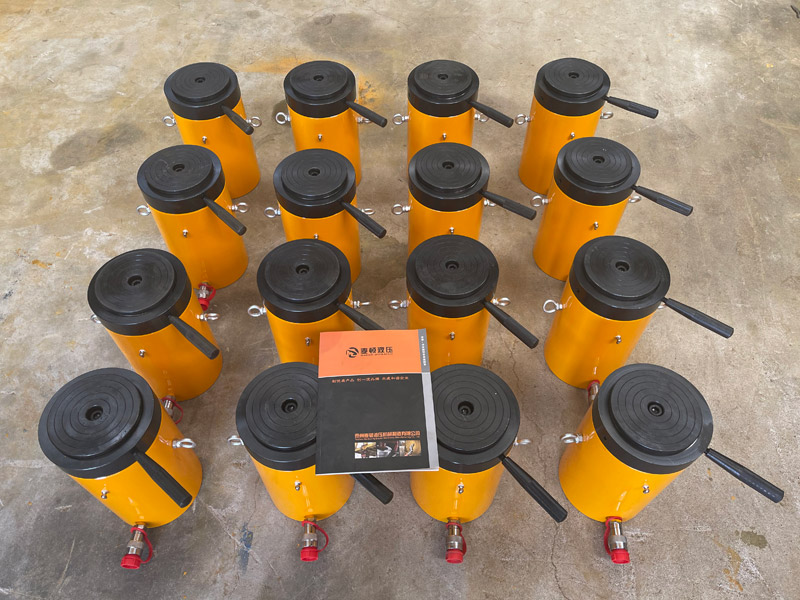 d)新的或久置的油壓千斤頂,因油缸內(nèi)存有較多空氣,開(kāi)始使用時(shí),活塞桿可能出現(xiàn)微小的突跳現(xiàn)象,可將油壓千斤頂空載往復(fù)運(yùn)動(dòng)2-3次,以排除腔內(nèi)的空氣。長(zhǎng)期閑置的千斤頂,由于密封件長(zhǎng)期不工作而造成密封件的硬化,從而影響油壓千斤頂?shù)氖褂脡勖?,所以油壓千斤頂在不用時(shí),每月要將油壓千斤頂空載往復(fù)運(yùn)動(dòng)2-3次。