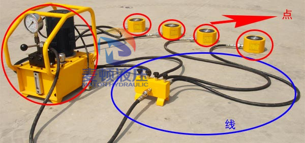 “點”即檢查系統(tǒng)的動力源——液壓泵站和執(zhí)行元件——薄型液壓千斤頂、電動機。然后檢查“線”——動力源到執(zhí)行元件之間經過的管路和控制元件。